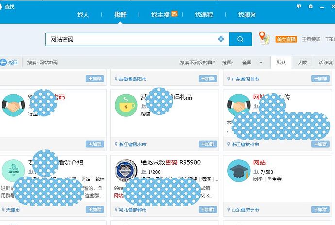 可以发掘一下别的,我们搜索网站后台的密码,检索网站密码出来一些群信息。