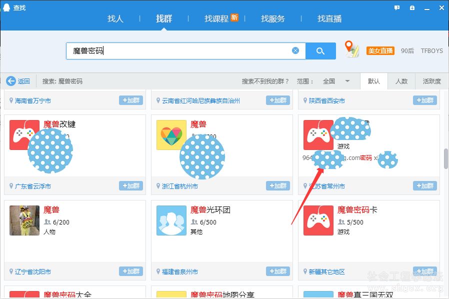 我们可以打开QQ群中的查询功能,然后检索群